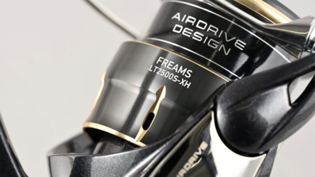 フリームスLT2500S-XHはバス、エギング、トラウトなどに対応するバーサタイルモデル。ハンドル1巻き87cmのエクストラハイギアで回収も早く、バスのライトリグなど手返し重視の釣りにも向く。