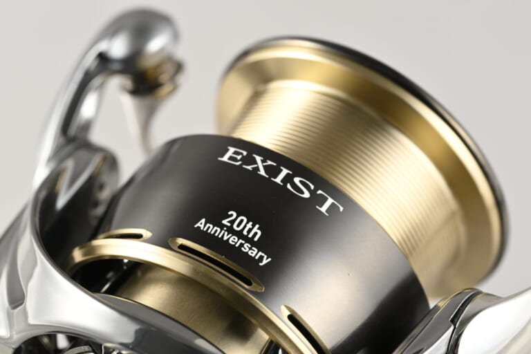 スプールは初代05イグジストを思わせるような切削の飾りアートが入り、ハンドル、スプール、ハンドルキャップに“20th Anniversary”の文字を印字。ルックスからも特別感が漂う眩しい存在に見える。