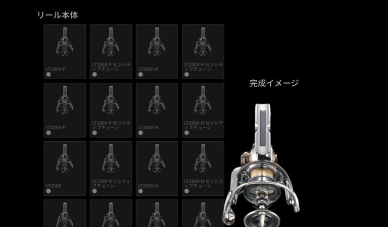 リール本体はLT1000-PからLT5000-CXHまで全24機種を用意。スプール、ドラグノブ、ハンドル、ハンドルノブの各パーツが好みに応じてオーダーシートから選択できる。
