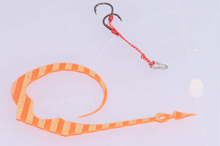 カラーバリエーションもテストから導き出した実績の高いラインナップ。リバーシブルレッド&オレンジ、リバーシブルブラック&レッドなどのベーシックな配色から、濁り潮で威力を発揮する「串オレンジ」や「ゴールドメッシュ」などの特色あるカラーまで揃え、釣り場や潮色に応じたセレクトが可能。