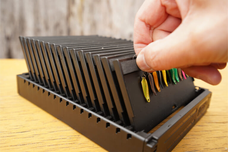 カミィのエリア用ルアーのすべてを収納しても、まだまだスペースには十分の余白があるほど収納力も抜群。収納システムの優劣で、釣りのテンポは確実に変化する。その変化を誰でも体感できるのが今回紹介したシステム。本当にオススメです。