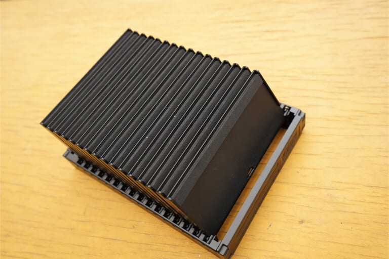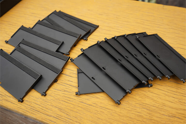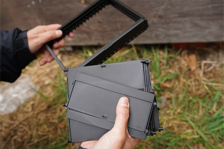 16枚のボードを外枠に設置。設置方法はとても簡単。不器用なカミィでも問題なく、ものの1分で設置完了。ちなみに簡単に着脱できる点も便利。