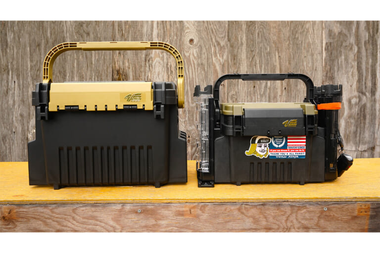 写真右が今までカミィが愛用していたプライベートボックス。そして写真左が新調した『VS-7090A』。なぜVS-7090Aなのか?その理由はエリアトラウトに特化したボックスだから。だけではない。