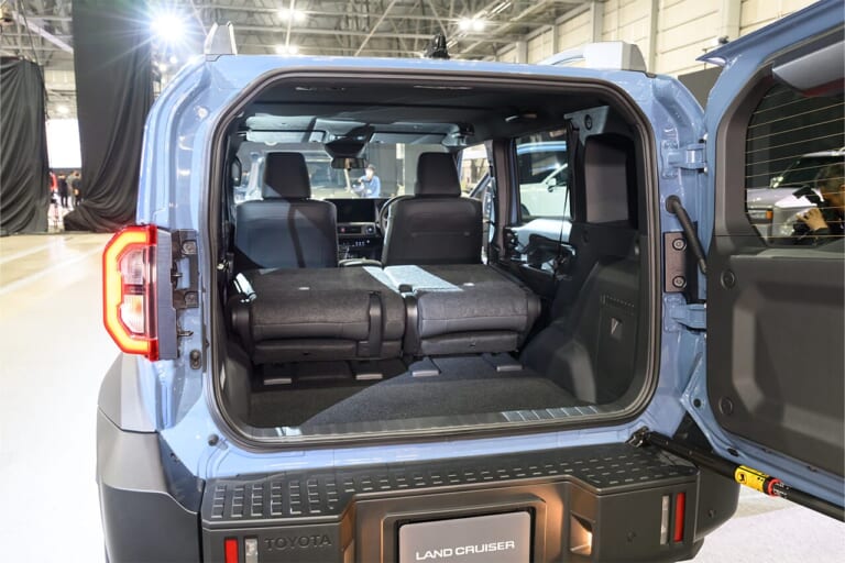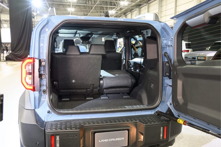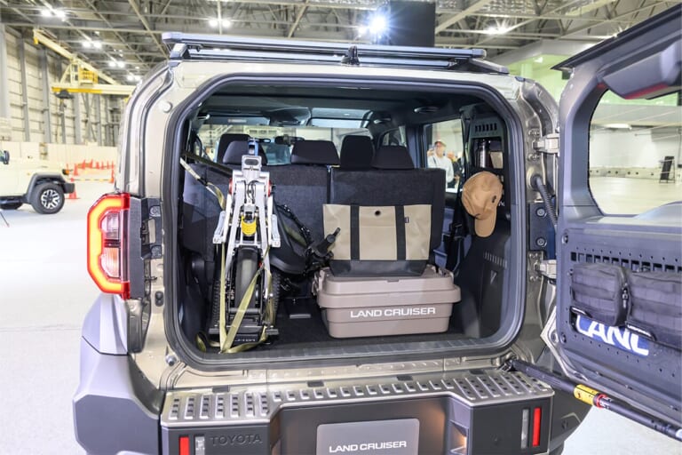 公開されている海外仕様のランドクルーザーFJのラゲッジスペースはこんな感じ。折りたたんだ自転車とカーゴボックスを積載しても多少は余裕がありそう。
