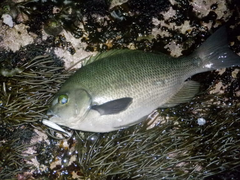 大晦日も夜に潮が大きく引くため、外房の磯へエントリーして29cmをキャッチしましたが、狙っている尺にはわずかに届かず。
