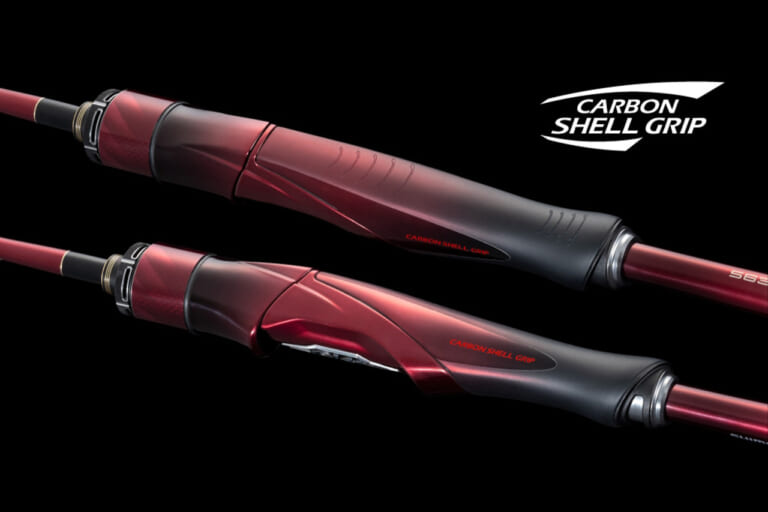 グリップ周りにも徹底したこだわりが。握りやすさとホールド感を向上させる新形状のカーボンシェルグリップは、中空構造による高い感度性能と軽量性を併せ持つ。