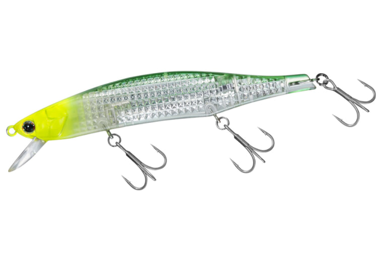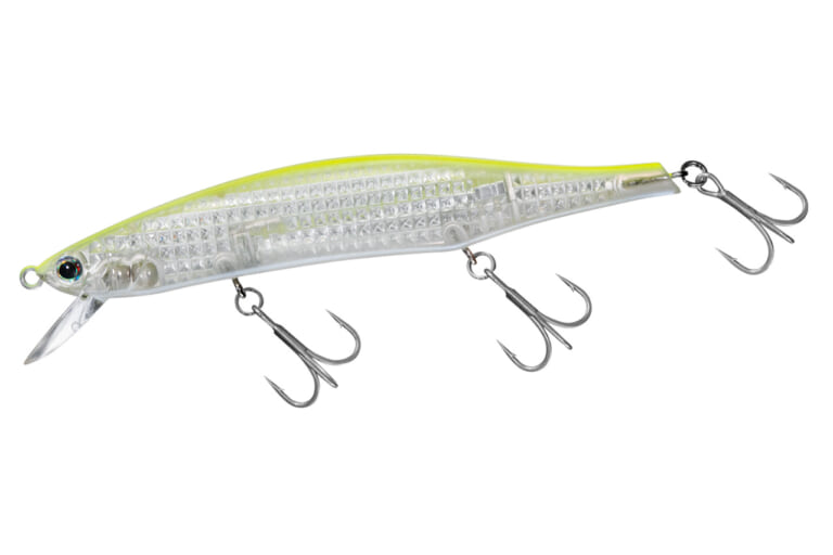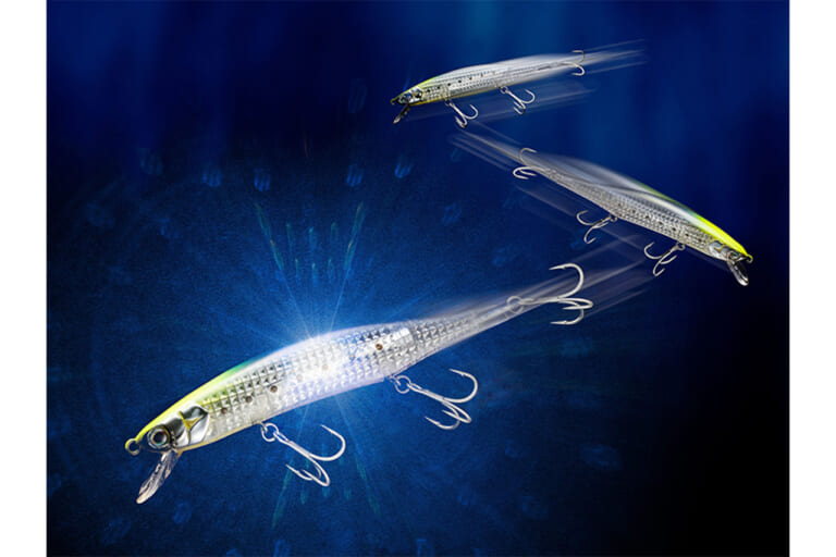 ラインナップは、フローティングモデルとシンキングモデルを設定。フローティングタイプは軽快な泳ぎとジャーク後の浮上動作でリアクションバイトを誘発し、シンキングタイプはタフコンディションや下のレンジの攻略に対応する。