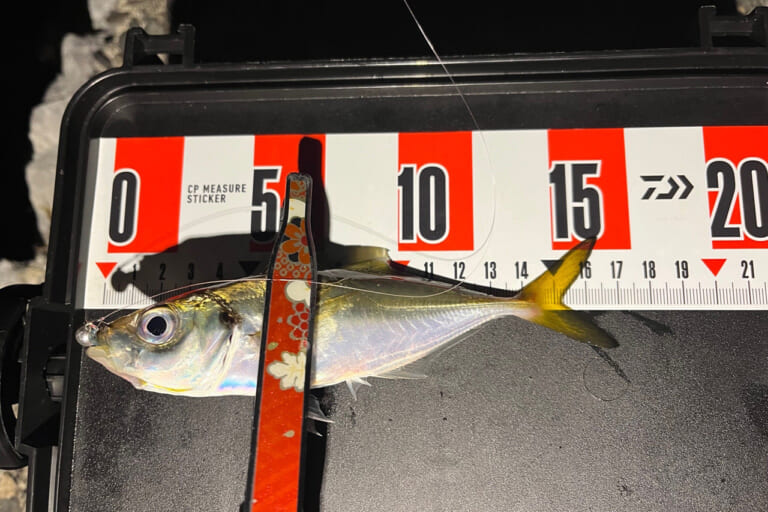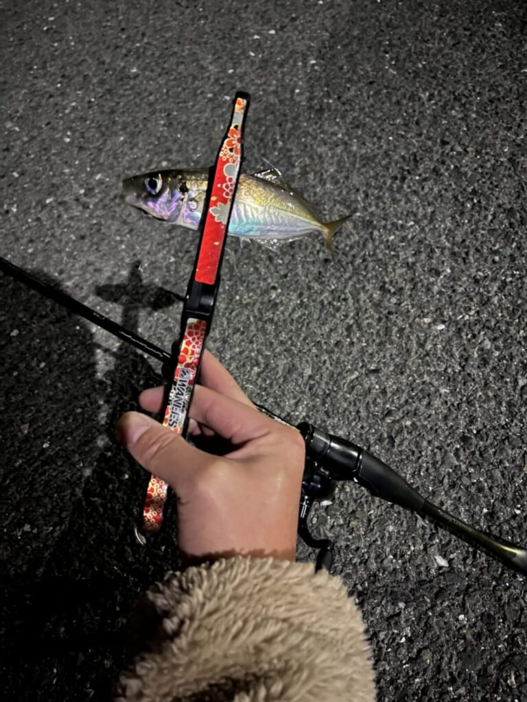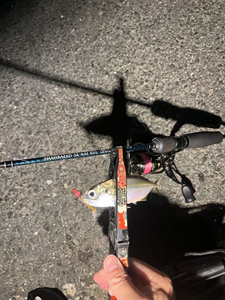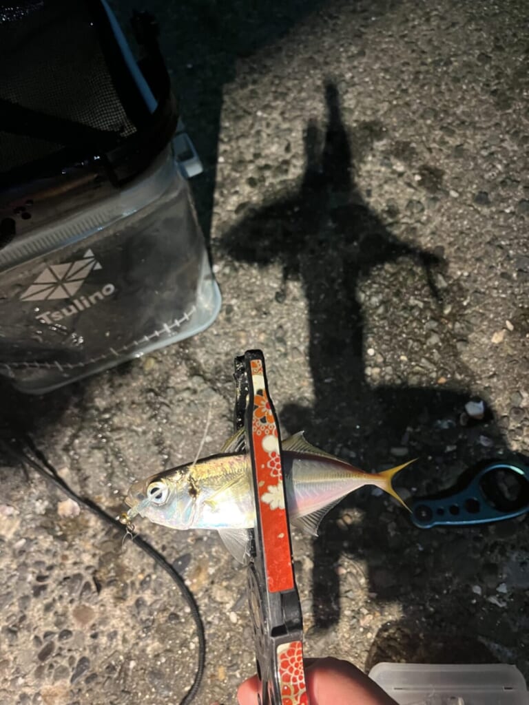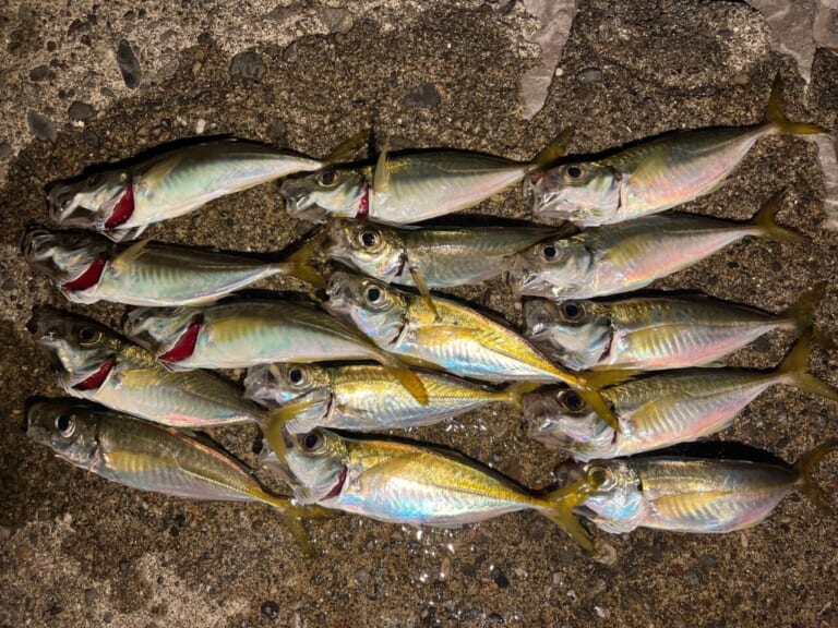 釣れるアジのサイズは、だいたい15センチくらい。手のひらに収まるサイズで、写真を撮ると銀色の体がきれいに光る。大物狙いというよりは、アジングらしい数釣りを楽しむ釣りになる。
