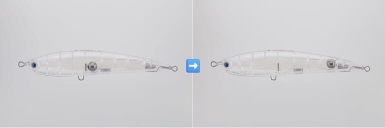 レガートの真骨頂は、ジャーク直後のリーリングによる「高速リトリーブ」でも水面を割らず、アクションし続ける安定感にある。今回の230mmモデルでもその特性は健在。むしろ、サイズアップによる水押し(波動)の強化と、側面の広い面積を活かした強烈なフラッシングが加わったことで、深場に潜む大型魚や、高活性な群れに対してこれまで以上の遠距離アピールが可能となった。