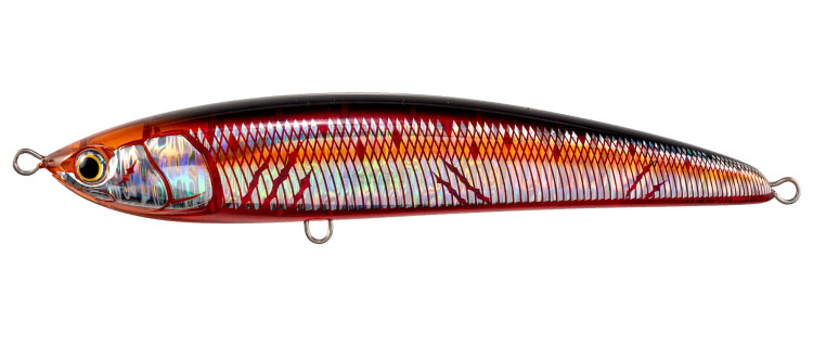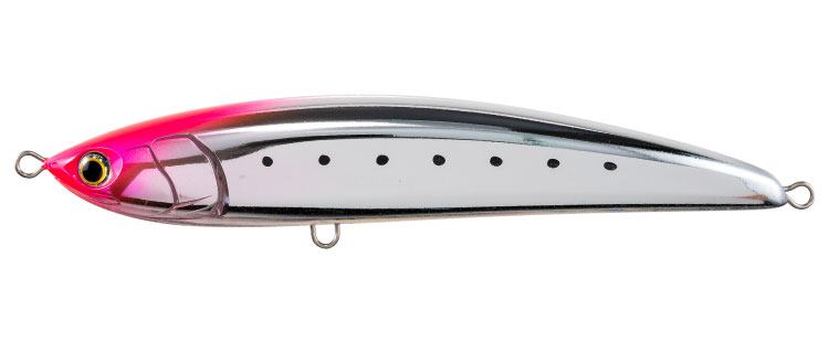 PE6号〜8号といったヘビータックルでの使用を想定し、ボディ重量はフック&リング込みで約115gに設定。さらにマリア独自のマグネット式重心移動システムを搭載することで、このサイズ感でありながら安定した飛行姿勢をキープ。向かい風や横風が吹き荒れるシチュエーションでも、ターゲットが待つピンスポットまで確実にルアーを届けてくれる。