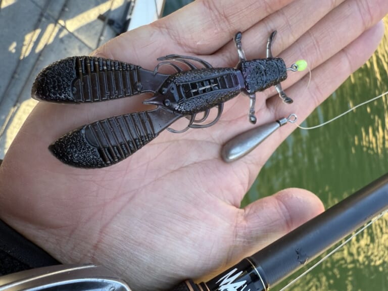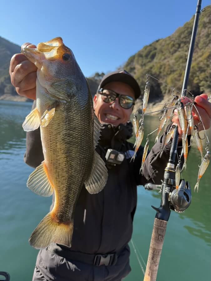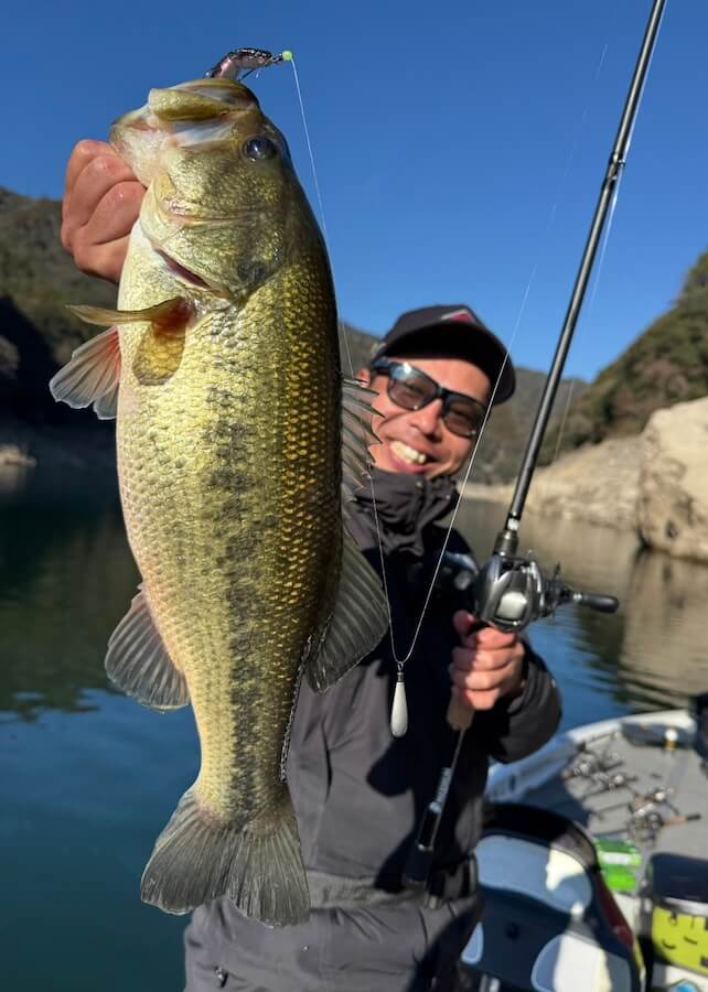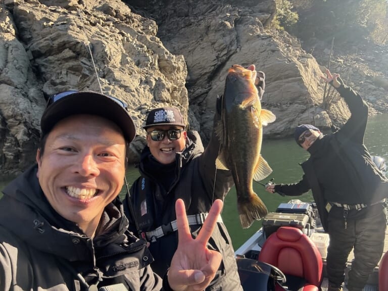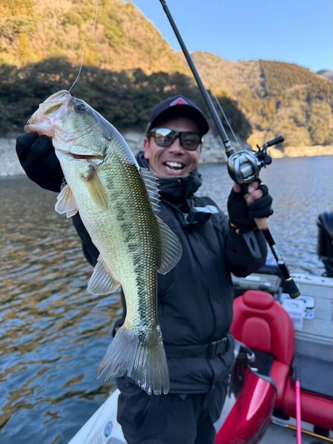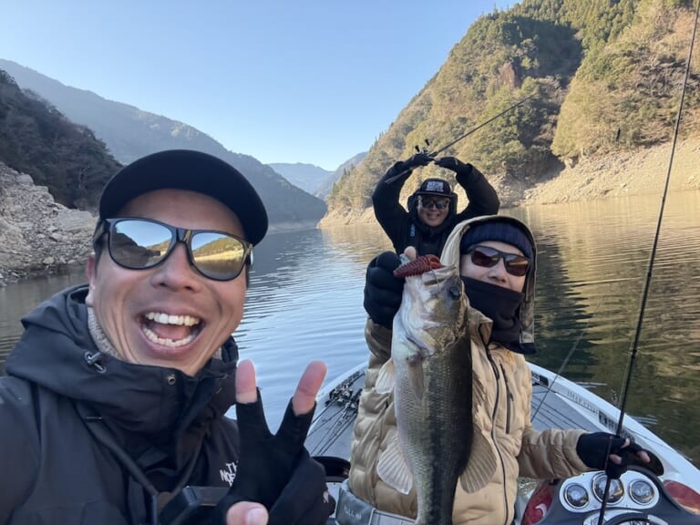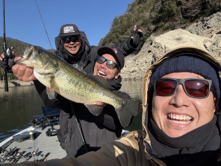 和田真至さんの早明浦ダム釣行レポート。真冬でありながらボート内で二桁釣果! もっともハマっていたのがエグチャンクのフリーリグ、シンカーは重めがおすすめとのことです!