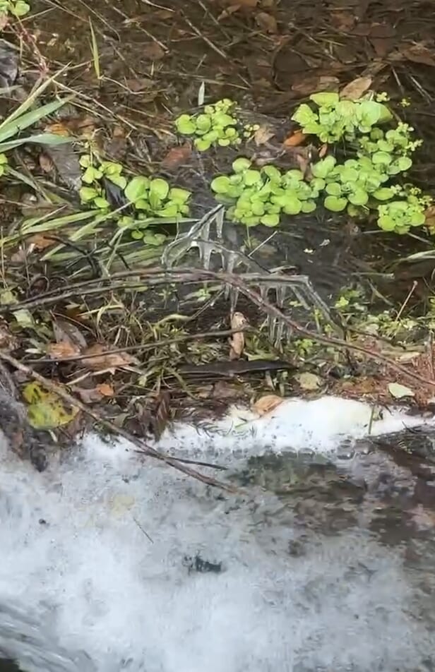 水辺には氷柱ができていました。