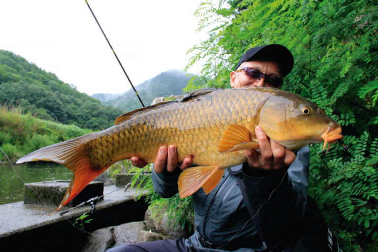 コイのパワーに負けず、 ロクマルクラスを余裕で取り込み!