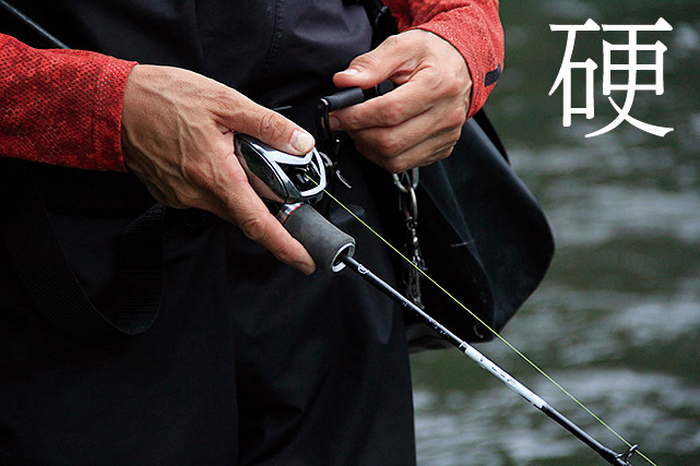「実は今回も例によって何本もプロトを作ってもらい、その中から中間的な1本を選出しようと思ってた。でも、柔硬それぞれピックアップしてみると、さらに後からもっと柔らかいモノ、もっと硬いモノ⋯って、ほしい欲求が膨らんできてね。それやったら、2本を一度に出そうってなった.。疾風72のイースト・ウエストで2本出したようにね。柔らかいソリッドと硬いソリッド。皆さんがどちらで遊びたいか。フィッシングショーなどで触ってみて、気に入ったほう⋯気持ちエエほうを使ってみてください」。