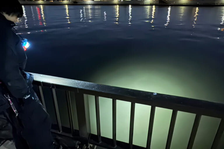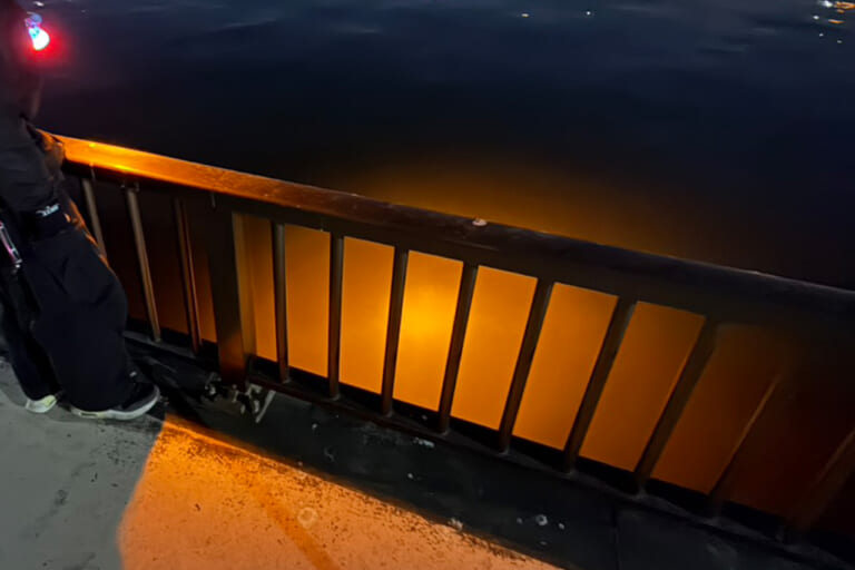 実際に水面を照らしてみても、白ライト、オレンジライトともにまったく見づらいなどの不満もなくしっかりと照らすことが出来ます。