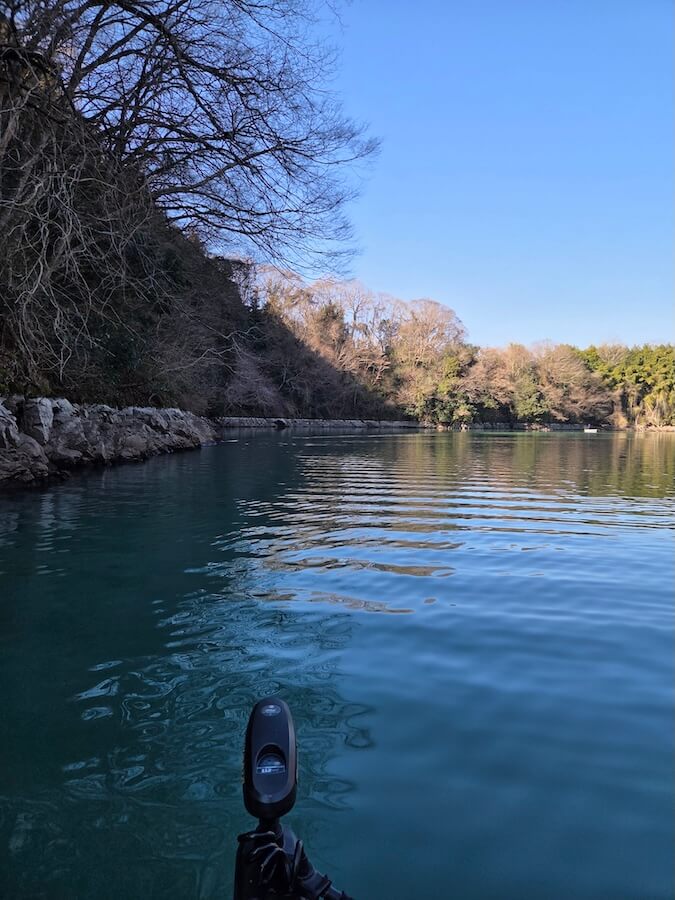 相模湖では越冬スポットとして人気な大曲りエリア。日陰の時間が長く、水温変動が少ないこのエリアはかなり有望。