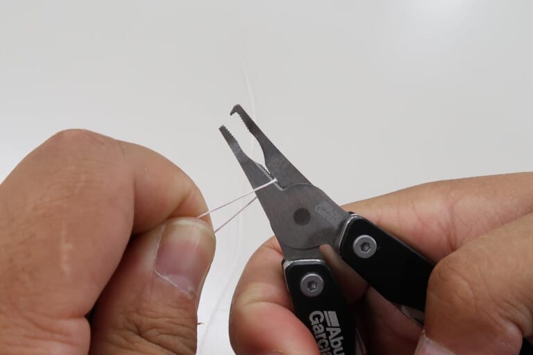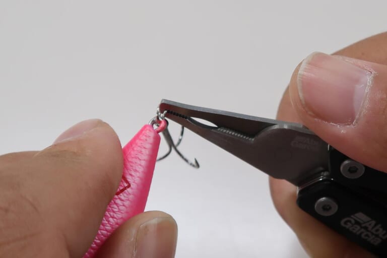 スプリットリングプライヤーとPEラインカッターだ。特にラインカッターはギザ歯仕様になっており、PEラインもしっかりと切れる設計になっている。