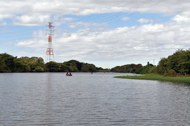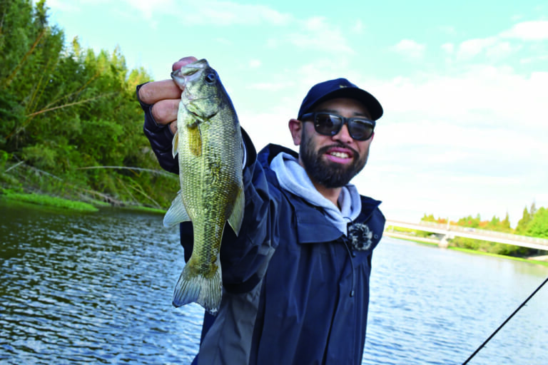 その言葉通り、この日櫻井さんはバイトがない厳しい時間を耐えながら、水深があるリサイクル工場前や橋脚下、ブレイクが近いストレッチ、通称「ボトルネック」と呼ばれる道路下のトンネル周辺に何度も入り直した。そして、時刻が 16時 を回り、 4度目 にボトルネックを訪れたとき、櫻井さんの竿が大きく曲がったのだった。