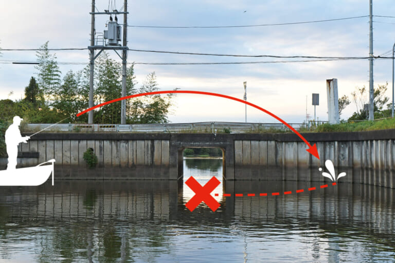 「同じ岸際でも、すぐ近くにブレイクなどの深みがある場所であれば、減水してもそこに魚が止まりやすい。一方で、遠浅なエリアは減水によって魚が岸から離れるとどこまでも移動してしまう。ルアーと出会う確率が低くなってしまうんです」。