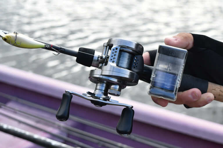 櫻井さんはいつも替えスプールを2~3個常備して、状況に応じてナイロン、フロロ、PEを使い分けている。