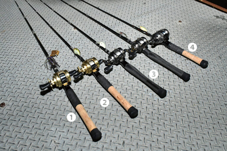 ①バズベイト用 ●ロッド:KLX-FNR 67M ※改(キスラー)●リール:カルカッタコンクエスト101HG(シマノ)●ライン:アブソルートHBナイロン 16lb(バリバス)