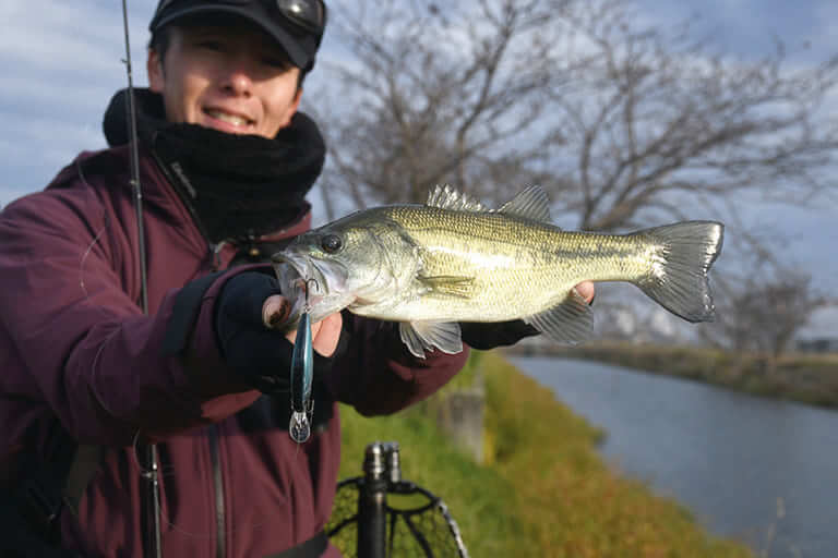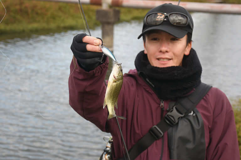 「魚がニュートラルな状態で、ふわっとしている感じがするんですよね。秋にどのフィールドで釣りをしていてもそう思います。普段、房総のリザーバーで釣りをすることも多いですが、ライブソナーで魚の反応を見ていても、秋は追ってきて食わないことが多いのに、冬はむしろちゃんと食ってきてくれたりする。これはオカッパリでも同じことが水中で起きていると思うんですね。こういうときは横方向でスピードを出したり、リアクションで攻めたりすると釣れ出すということはありますよ」。