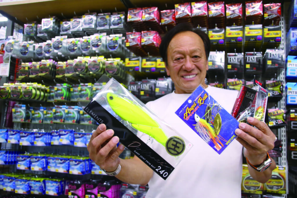 「池原ダムの立ち木周り、カスミや旧吉野川なんかの消波ブロック周り。ビッグベイトでからめてスローに誘う、根がかりしにくくかつ大きめのスピナーベイトで当てながら巻く。掛けた後に入り込まれても獲れます」