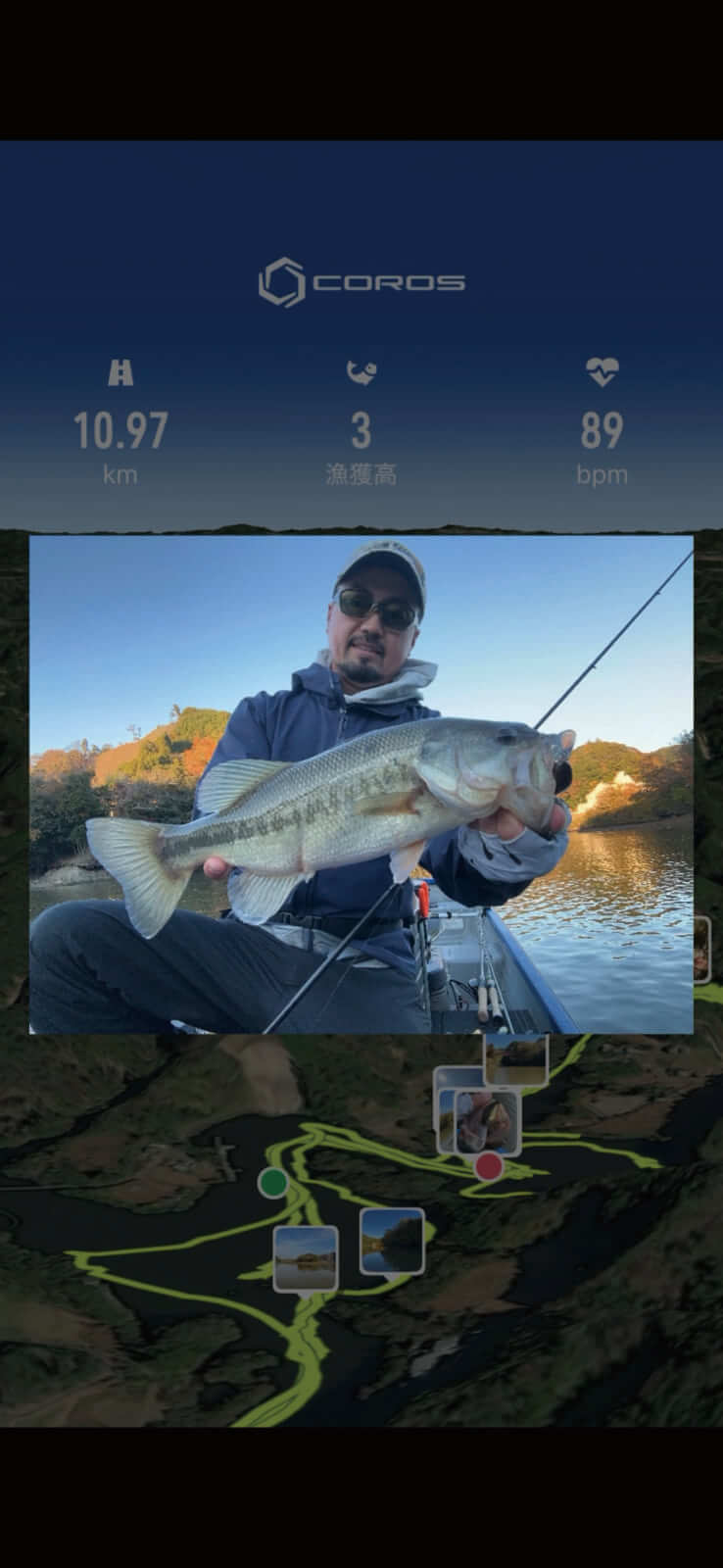 そして、私が一番感動したのが釣りモード起動中に収集されたデータを元に生成される3Dフライオーバー映像。自分がその日どのように移動したかをスタート地点から終了まで写真や動画とともに3Dマップで振り返ることができます。しかも、膨大な写真や動画の中から、アプリが日付と位置情報を元に自動選別してくれるので、作成が驚くほど簡単なんです。