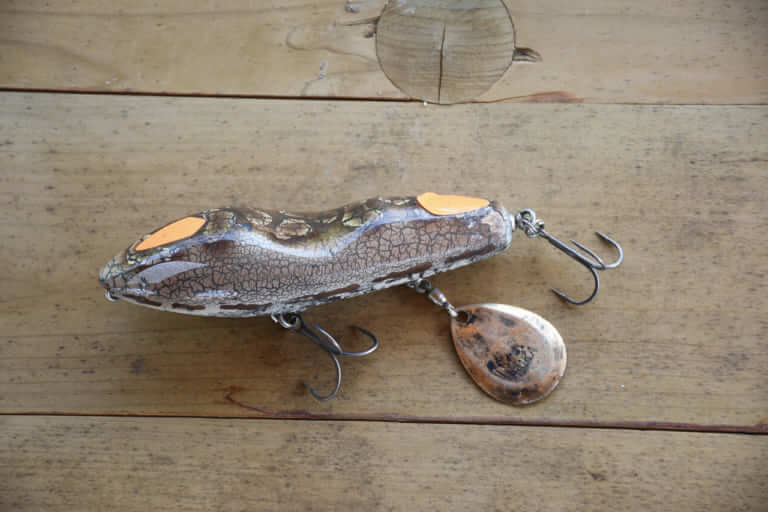 オイルフェンス絡みやウィンディーサイドなどで使用。「これは子供のころに買った古いモデル。かなり使い込んでいて、40アップは何十本も釣りました。リザーバーでもカスミでもよく釣れます」。