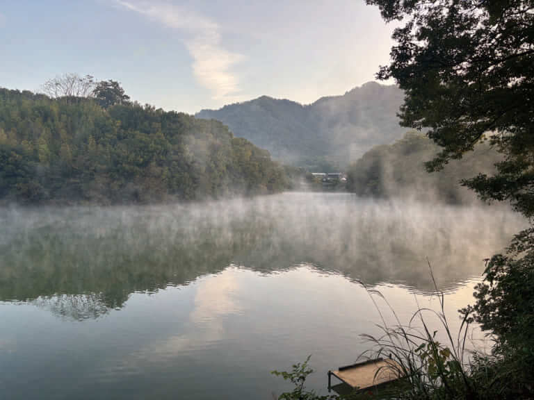 取材は10月末に行われたが、この日の朝の気温は7度。まるで冬のような冷え込みに、湖面からは大量の湯気が立っていた。
