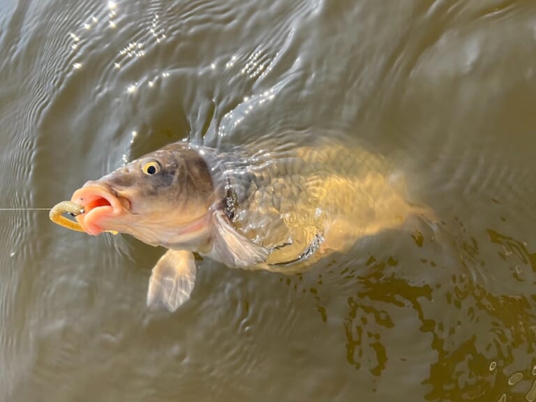 相当な重量感にドキッとしたものの、コイでした(笑)。