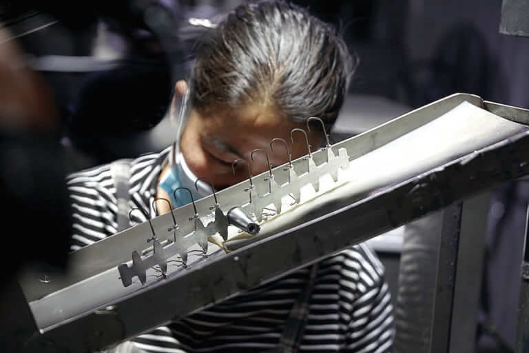 オフセットフックなどのワームフックならこれで完成だが、モノによってはまだまだ工程を経る。BKKでは各作業ごとに従業員がしっかりと担当し、質の高い製品を製造している。