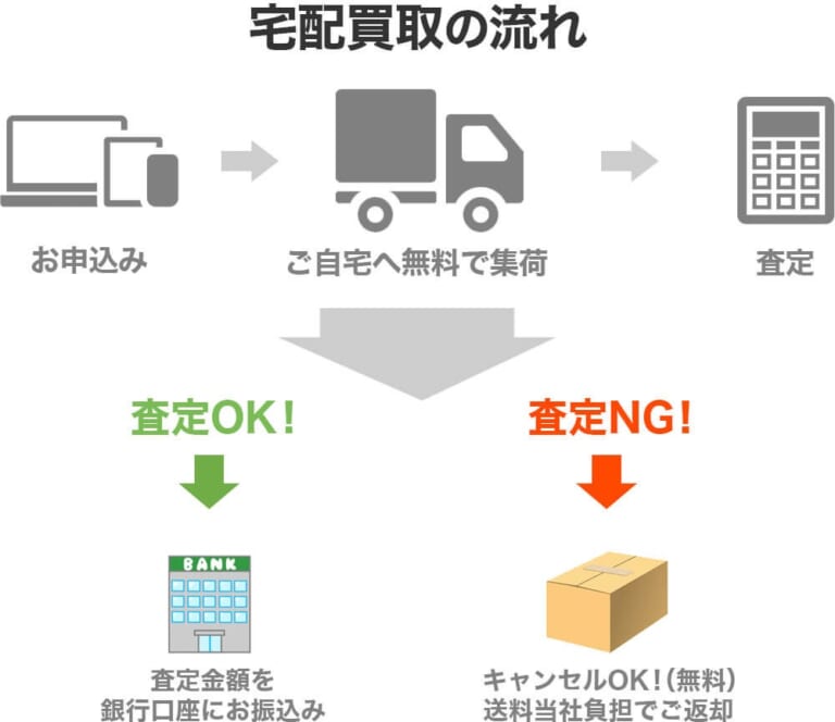 一方「宅配買取」なら、自宅から買取りに出すアイテムを送料無料で発送可能! 査定後のキャンセルOKや最短2日で買取金額が口座に振り込まれるなど、安心度も高いのだ。