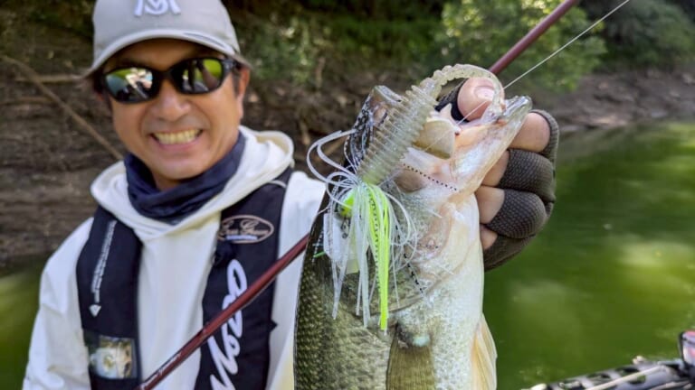 「かつての練習中にブレットから『釣れたか?』って聞かれると、その後大抵発せられる言葉が『ダーク・オア・ブライト?』なんですワ。彼は具体的に何色? とは聞かないんですワ」。前者はザリガニを模したグリパンなどの暗い系、後者はシャッドの白など明るい系を意味する。「大雑把やけど、その中から自分でアタリカラーを見つけるのがめっちゃ繊細。例えば…」