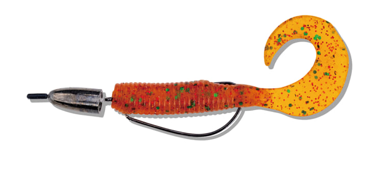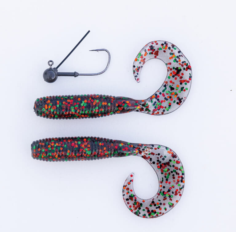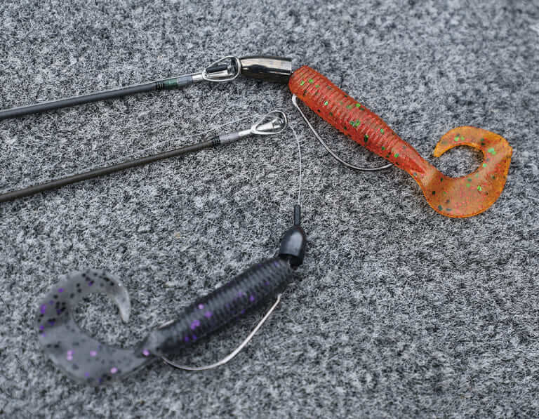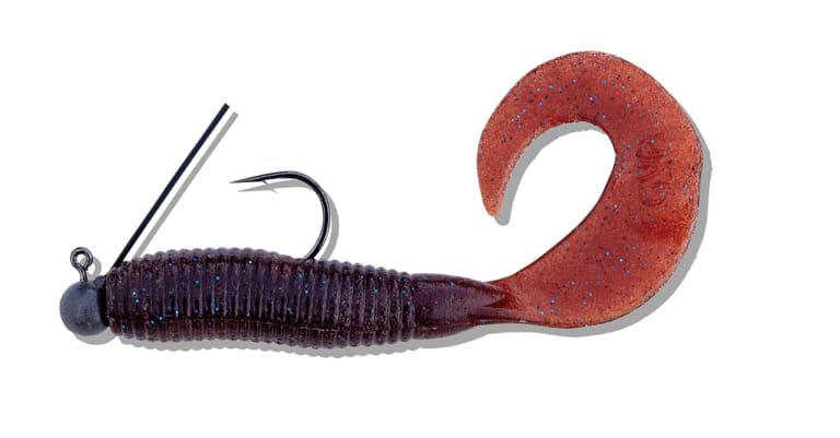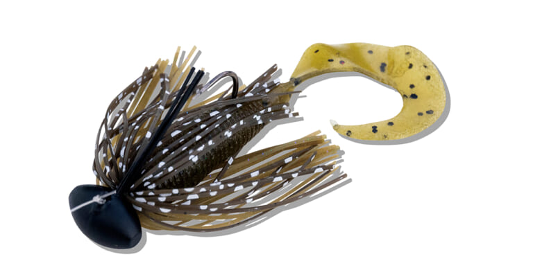 ジグはそのスピードに合うウエイトを選ぶという。また、トレーラーにはダブルテールグラブを使うことも。