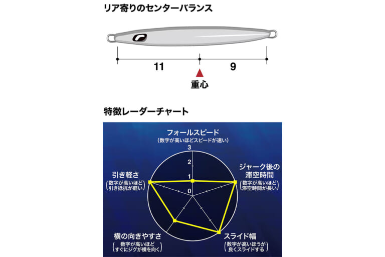 軽比重ながら長さを活かして底取り性能も確保しており、深場でもレンジを外さない信頼性を持つ。