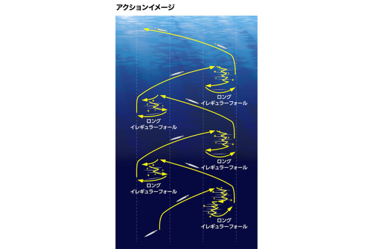 薄いヘッド形状により水切れが良く、ジャーク時には大きくスライドし、フォールではイレギュラーなフラッシングで強烈にアピール。