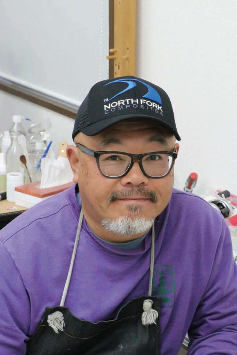 1967年生まれ。株式会社ブルーピークス代表。趣味のロッドビルディングが講じてゲイリー・ルーミスを訪ねたことをきっかけに、ノースフォークコンポジットの総代理店を立ち上げる。ジャパンモデルの企画・デザインを担当、コアなアングラーをも唸らせる堅実なロッド作りに定評がある。