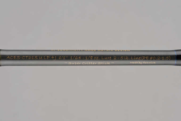「ブランクスはもうクリッタースティックで完成していると思ってたんですが、試しに新しい工場にブランクスを発注したらまったく別の物に仕上がってきた。同じようなブランクスデザインなのに軽くなっているし、それでいてすごく曲げやすく、感度も高い。中身の詰まった、『芯のあるロッド』に仕上がっているんですよね。同じように投げたら、ルアーが矢のように飛んでいくし、いろいろな要素がレベルアップしていた。工場で独自の味付けをしてもらっていることで、高弾性の特性をスポイルすることなくしなやかさも持たせてあるんですね。ナノアロイ・T1100G系のカーボンを使って、こんなにしなやかに仕上げているロッドはなかなかないと思いますよ。また、軽さにこだわったわけではないですが、12gも軽くなっています。クリッタースティックはかなり使ってきた竿ですが、正直、以前のクリッタースティックにはもう戻れないですね」。
