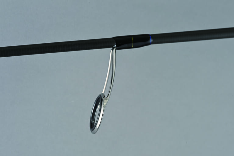 「このロッドは僕自身、プライベートからトーナメントまで相当釣り込みました。ベリーからバットは張りがありすぎるとPEとは相性が悪いので、しなやかにしてあります。そしてティップ部分には硬めのソリッド。普通のチューブラーでPEラインで操作するとルアーが動きすぎてしまうので、それを抑制させるためです。硬いソリッドって意味あるの?って言われますが、曲がったところからさらにもう一段階曲がってくれるので、アクション差が出るんです。野良ネズミを動かしたときも、アクションの生き生きさがまったく違いますよ」。
