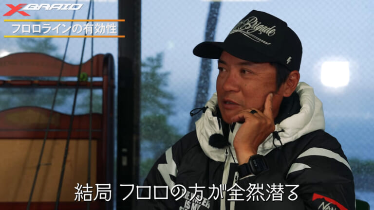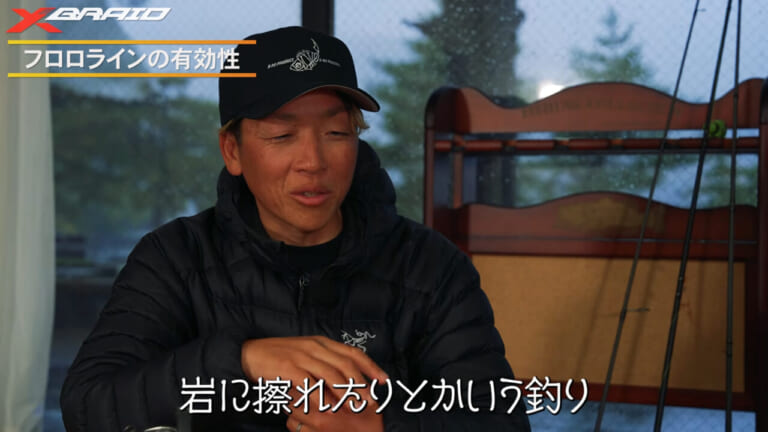動画では水中のラインの軌道など、実釣ですぐに役立つフロロカーボンとPEラインの特性の違いなども解説。そして使用フロロカーボンラインについても言及。
