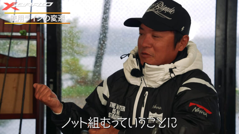 渡部「最初は電車結びでしたけど、やっぱり抜ける。PEラインは小さなルアーを遠くに飛ばすためでもある。結び目のガイド抜けでストレスがかかって飛ばないこともあるので、今はFGみたいな摩擦系ノットです」