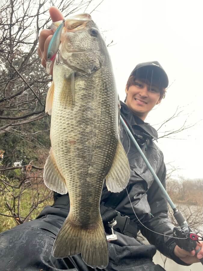 その後釣れなくなったのでまた時間を空けて入り直すことに。数時間置いてまたサイレントシャッドで投げ続けると、最後に一発ドカンで45クラスが釣れてくれました!