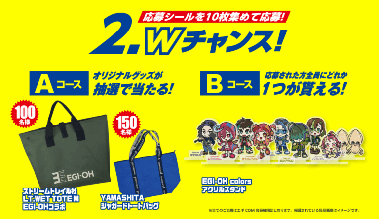 応募券(シール)を10枚集めて豪華賞品(A・Bコース)を狙う「Wチャンス」など、春のデカイカに向けてエギを補充するなら今が絶対にお得なのだ。
