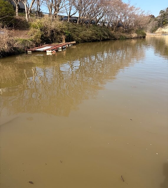 じいさんワンド最奥!水温高く適度な濁りで期待しましたが…その後は、またしても神社下で「ギラ!」ってチェイスがありましたが、またしても喰ってない。濁ってると食べるの下手なの?