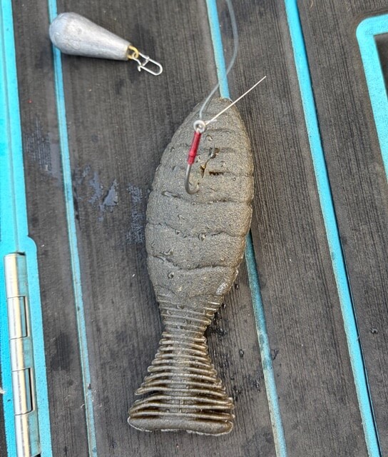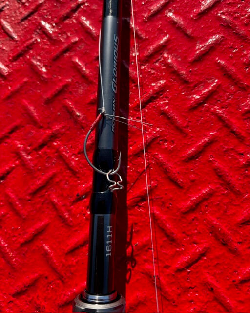 シボフラワッキー!ツーチェイス!根掛かり外しにナス型オモリは必須。ロッドは26ポイズングロリアス1611H。このロッドはティップに特徴があります。ソフトベイトを繊細に扱う釣りでビッグフィッシュを狙うために欠かせない1本。