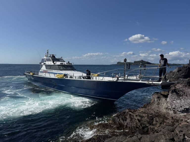全長25mの大型船を含む四隻体制で、キャビンやトイレも完備されているので快適に、そして安全にポイントまで運んでくれる。