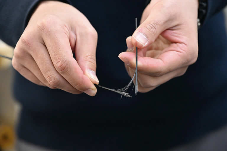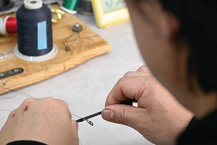一般的にはモーターを使う工程だが、あえて手でやるのがデジーノ流。ロッド1本あたり15分ほどで巻く。驚くほど作業が早い。「これができるようになるのは6〜7人に1人です。もう才能がすべてなので、練習すればできるものでもない」。