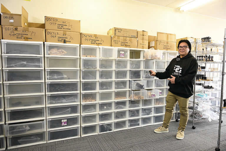 工房は至るところ、壁一面がパーツの棚になっている。「朝思いついたことが夕方には形になってる。『もっとこうしたい』がすぐに試せる。それができる環境作りが大事です」。