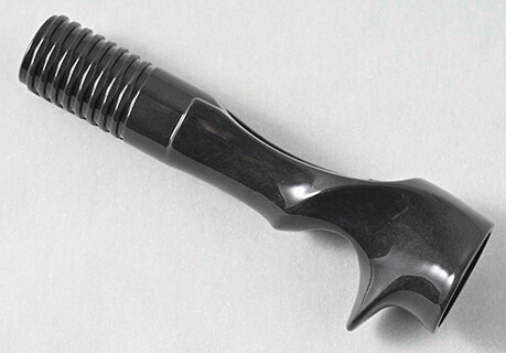 ブランクスとリールシートの隙間を埋めるアーバー。これも超軽量の材料を選んで製作した。「カーボンが軽くていいという人もいますが、実は全然重い。これは発泡樹脂で、めちゃくちゃ軽い」。